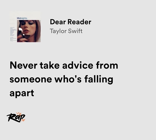 . The opening lines set a tone of introspection, suggesting that the narrator is aware of their own struggles and is reaching out to offer guidance. Provided to YouTube by Universal Music Group Dear Reader · Taylor Swift Midnights ℗ 2022 Taylor Swift Released on: 2022-10-21 Producer, Studio Personnel, Recording Engineer, Associated.
