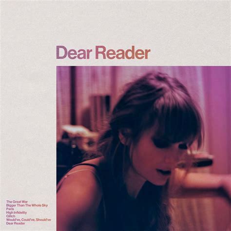 Dear Reader Taylor Swift. Dear Reader Lyrics by Taylor Swift Poster The lyrics of Taylor Swift's "Dear Reader" theoretically encapsulates the philosophical practices that Taylor lives by. Taylor Swift's track 'Dear Reader,' with its introspective lyrics and haunting melody, is a portal into the realm of self-reflection and life's intricate escapades